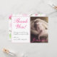 Celebrate the birth of your new baby girl with this sweet and adorable "It's a Girl!" Baby Girl Baby Shower Photo Thank You Card. Replace the photo with your own. Customise the pink and black font and colour of the text with your own choice or keep this popular style of handwritten typography simply by using the edit menu. A soft pink and white floral pattern is featured on the back of the thank you card. Other colours and patterns, matching stickers, envelopes, and return address labels are available.