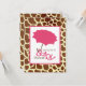 A girl baby shower invitation featuring an illustration of a pink umbrella over a background of giraffe print. Personalise the text on the back with details of your occasion.
