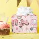 An Adorable Baby Girl Shower Wrapping Paper Patterned In Toys, Bottles, and Shoes