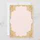This elegant pink and gold baptism invitation with a vintage air, recommended for a girl, has an ornate faux gold foil frame with golden leaves on a blush pink background. Above the text there is a religious cross in faux gold foil. All text can be personalised and has a golden colour similar to the faux gold frame.