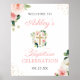 Blush Pink Floral Gold Cross Girl Baptism Celebration Sign Poster.