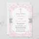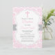 Girl Baptism Invitation. Pink and Gary Damask. First Communion. Christening. Child Dedication. For further customisation, please click the "Customise it" button and use our design tool to modify this template.