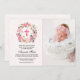 This modern, elegant baptism invitation features your child's photo and a beautiful floral watercolor wreath of pink garden flowers around a pink cross, perfect for your daughter's special occasion. MATCHING items available in our collection.