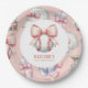 Girl Birthday Personalized Pink Baseball Bow Paper Plate