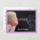 This is my coloured pencil artwork of a little blonde girl happily blowing bubbles, an image that lends itself perfectly to this customisable, invitation postcard.