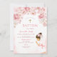 Elegant Blush Pink Floral Girl Christening Baptism Invitation