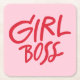 Girl Boss Bold Typography Red & Pink Feminine Square Paper Coaster