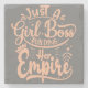 A stone coaster for all the women entrepreneurs out there! "Just a girl boss building her empire' word art in pink on grey background.