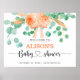 Girl Botanical teal and orange Baby Shower welcome Poster