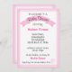 Pink and White Baby Shower Invitation for Bring a book themed showers. Pink Banner with Baby Shower and details of the baby shower. The perfect shower invite for baby girls.