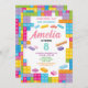 Girl Building Block Birthday Invitation. Bricks Invitation