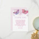Girl Butterfly Theme 1st Birthday Party Thank You Card