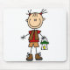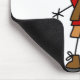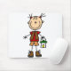 An adorable little girl dressed in hiking boots and a vest carries a lantern on our camping theme stick figures customisable mousepad.