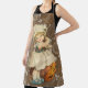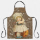 Halloween Apron with a little girl in old-fashioned dress, carving an apple and throwing the peal over her shoulder. This was a game played by children. The apple peal was to fall indicating the initials or name of their future betrothed.