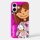 Girly cuddles pink case cute modern graphic girls case. Girl clutching her lucky white bunny. This case reads Isabelle or personalise with your child's name. Original design by Sarah Trett for www.mylittleeden.com