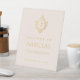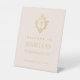 Girl Confirmation Elegant Pink Gold Cross in Crest Pedestal Sign