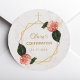 Girl Confirmation Pink Camellia Floral Gold Marble Classic Round Sticker