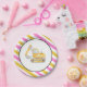 These pink and yellow plates are perfect for your girls construction themed party!