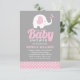 Cute Pink Grey Elephant Baby Shower Invitation for a Girl - Polka dots