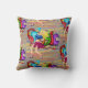 Girl with long blonde hair dancing and a graffiti wall background. One side of the pillow has a large print and the other side has a smaller repeat pattern. There is a series of these prints with different characters.