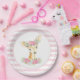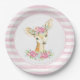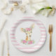 Girl deer baby shower paper plates with adorable watercolor girl deer with pretty watercolor flowers on a pink and white watercolor background. These cute baby deer paper plates are easily customised with text.