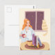 Girl Drinking Tea with cat in cosy room Postcard