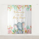 Your guests will LOVE this tapestry backdrop. Design features an adorable baby elephant that was handpainted with watercolors, gorgeous blush flowers and a lovely gold script. It's perfect for a girl baby shower or 1st birthday party.