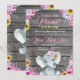 Very cute Girl Elephant/Peanut Baby Shower invitation with pink and purple, yellow (sunflower) watercolor flowers and wooden background. All fields are editable. Suitable for birthday or Baby Showers, Diaper shower,sip and see.