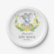 Girl Elephant Baby Shower Yellow and Grey Paper Plate