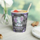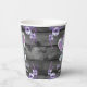 Customisable paper cups for birthday or baby shower or birthday with cute watercolor elephant girl in purple theme with wooden background. You can add two lines of any text. Rustic style. matching items here https://www.zazzle.com/collections/purple_rustic_elephant_theme_ao144pr-119038446732911779