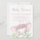 Girl Elephant Pink Rose Watercolor Baby Shower Invitation