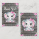 Pink Grey Elephant Thank You card for Birthdays, Baby Showers, Gender reveal parties.
