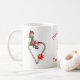 Whimsical girl elf sitting on a candy cane heart with a red bow Christmas Holiday coffee or tea mug. Add your own personal message using the template, or delete that option for a plain mug. To further customise the text, click on Customise. Available in assorted sizes, styles, and colours. Please visit my gallery to see more Christmas and Holiday cards and gifts. Thanks for stopping by Smilin' Eyes Treasures!