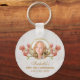 Girl First Communion Photo Pink Magnolia Floral Key Ring