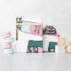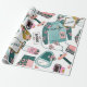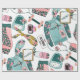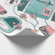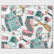 Fun watercolor fitness themed pattern wrapping paper in accents of teal, gold and pink.