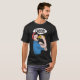 I give wanted to give this a 4 instead of a 5 because these Basic DARK T0shirts run unexpectedly SLIM or Narrow. Which is great if you do not have a potbelly, but I have a paunch. It isn't the shirt's fault that I've got a beer belly. The design and shirt itself is a quality cotton shirt. The color is more of a deep purple, but still a very pretty color. The Basic DARK T-shirts run a bit SLIMMER than the Basic Ts. The neck is a fraction narrower (or seems to be narrower) also. I'm a paunchy middle-aged woman and my neck is 12 inches (31cm) thick and the neckline fell about the same as in the photo of the man, and I had the desire to tug it a bit. So if you're a thick necked man or like loose shirts, be aware these are slimmer shirts. Once I get rid of my lockdown paunch it'll look great. The shirt washed well in cold water with no apparent bleeding. We don't have a dryer, so it hung dry. Did not shrink. Love the colors and the design. The design looks smaller on my shirt than it does on the model on-line. But still, it looks good on the shirt. The printing looks as it does on the model, just the size seems fractionally smaller. Washed garment in cold water, hung dry and design appeared unaffected.