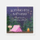Girl glamping birthday party napkins with a cute pink tent and campfire on a starry nighttime forest background. These cute girls camping birthday party napkins are easily customised for your event by simply adding your details in the font style and wording of your choice.