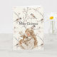Girl Holding Deer Birds Tree Cream Christmas Card