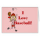 Girl I Love Baseball T-shirts, mugs, cards, postage, stickers, baseball magnets, tote bags, hoodies, and other baseball apparel and gift items featuring a blonde haired stick figure girl baseball player in a red and white baseball uniform and red text that reads "I Love Baseball"!