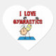 A stick figure girl does a handstand on the mat practicing her floor routine and text reads "I Love Gymnastics" on girl gymnast T-shirts, mugs, tote bags, mousepads, stickers, cards, and other girl gymnast apparel and gift items.