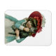 Girl in Bonnet with Christmas Kitten Magnet