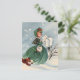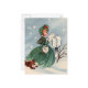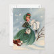 Vintage artwork showing a cute little blonde girl in Green Coat Mailing Christmas Cards