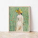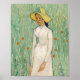 Girl in White (1890) | Original artwork by Dutch post-impressionist artist Vincent van Gogh (1853-1890). The painting depicts a woman wearing a white dress and yellow straw hat, standing in a soft green field scattered with red flowers.