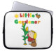 A little blonde girl looks up to see the top of the corn stalk growing in her garden on this cute and colourful gardening design on bibs, burp cloths, blankets, keepsakes, plates, pillows, and many other items.