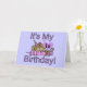 Girl Monkey 1st Birthday greeting card featuring an adorable girl monkey with a giant pink and lavender striped candle and a party hat and text that reads "It's My 1st Birthday!".