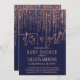 Girl Navy Rose Gold Glitter Fringe Baby Shower Invitation