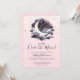 Trendy Watercolor Over The Moon Baby Shower Invitation. Celebrate the mum to be with this celestial themed baby shower theme. An elegant yet trendy and playful look with a black and navy blue watercolor midnight sky, stars mooon and stars surrounded by a pink cloudy sky. An elegant mix of script typography and a serif font in a super deep navy blue that looks black. The background is an ombre or gradient blush pink colouring. You can change all of the text colours and the background if you want to change to blue or even a more gender neutral colouring.