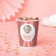 Delightful pink and white baby shower Paper Cups with a balloon, beautifully designed to hold sweet surprises for guests celebrating the new arrival.