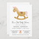 Girl Pink Gold Retro Rocking Horse Baby Shower Invitation