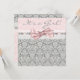 Pretty pink grey damask pink eyelet ribbon white lace pink grey damask pink grey baby girl baby shower invitation. Add your details to the front and back by adding your event details, font style, font size & colour, and wording.